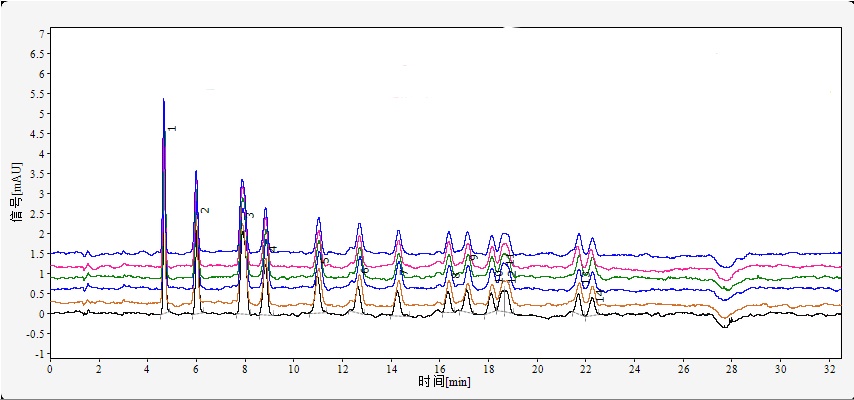 流動相A:乙腈(1%水),流動相B:純水,梯度洗脫