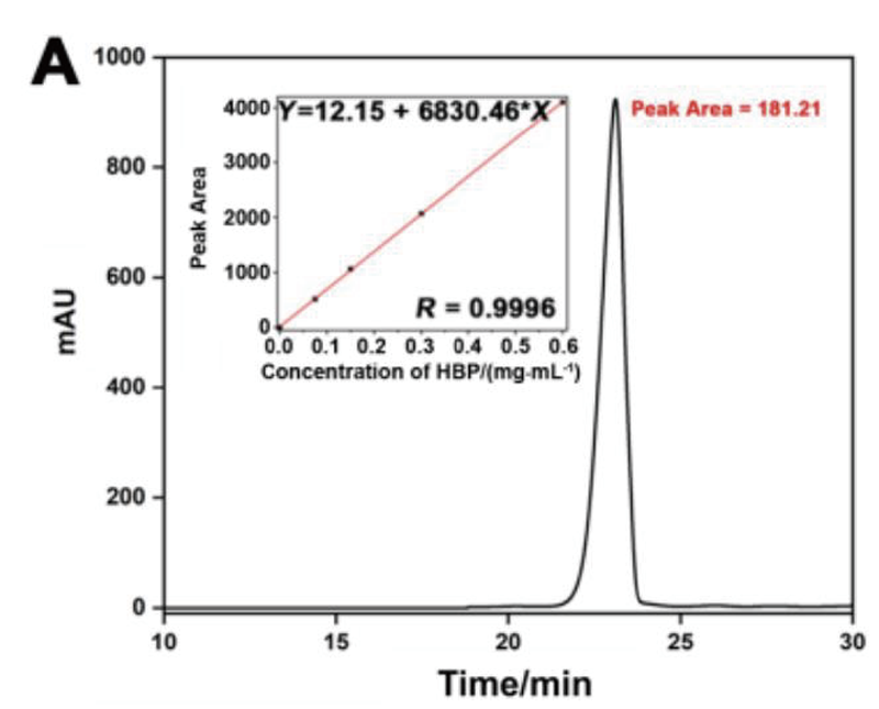 通過依利特EClassical 3100液相色譜儀搭配經典Superisil ODS2色譜柱,對檢測介質中的HBP NPs含量進行測試。檢測HBP NPs的累積釋放量表明,在模擬的生理環境和腫瘤的微酸性條件下,HBP從HBP NPs中緩慢釋放,這將有助于延長藥物作用時間,保持對腫瘤血管的持續破壞,從而達到持續抑制腫瘤的效果。