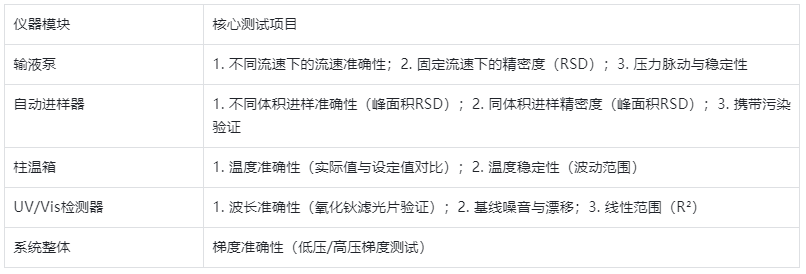 梯度準確性:通過特定測試(如低壓梯度或高壓梯度測試)驗證梯度比例的實際值與設定值的一致性。