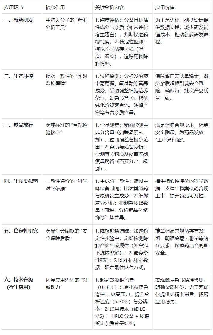 表1:高效液相色譜儀在生物制藥中的應用概括表?