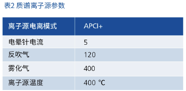 采用 EClassical 3200L-MS2 Vertical 9100 三重四極桿液質聯用系統進行分析,離子源參數及目標化合物質譜參數見表 2 和表 3。