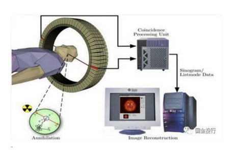 PET 裝備硬件部分由 PET 掃描架、探測器環、電子線路和計算機系統、圖像工作站組成。軟件部分包括圖像重建和圖像處理系統。