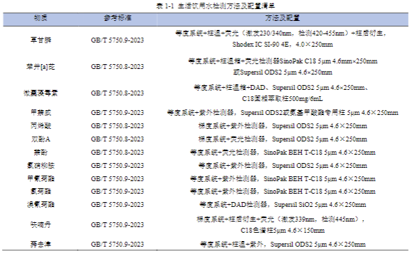 附錄文件:GB5749-2022、GB/T 5750-2023 標準原文節選、儀器校準證書模板、耗材訂貨清單(色譜柱、濾膜、試劑型號編碼)。