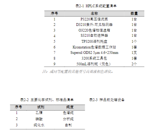 本實驗參考《GB/T 5750.8-2023 生活飲用水標準檢驗方法 第 8 部分:有機物指標》,采用依利特公司生產的 EClassical 3200 高效液相色譜儀,對生活飲用水中的丙烯酸的液相色譜測定法進行方法驗證。