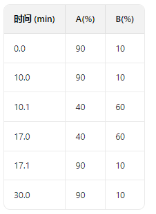 流動相:A 相:0.2% 磷酸水溶液(pH=1.82),B 相:乙腈