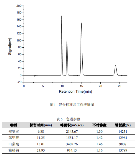 該解決方案在滿足 GB5009.28-2016《食品中苯甲酸、山梨酸和糖精鈉的測定》要求的前提下,不僅可以同時檢測四種食品添加劑,還解決了使用普通 C18 色譜柱壽命短的問題,僅供大家參考使用!