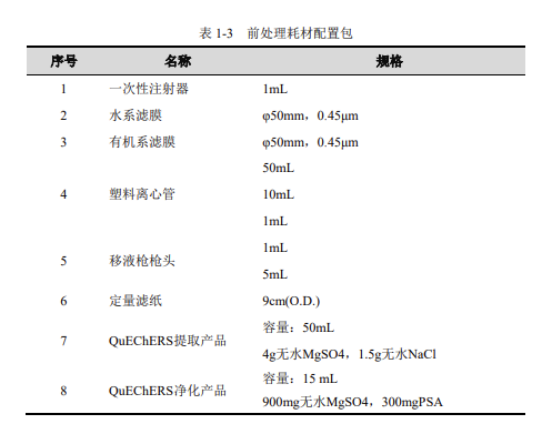 本方法應用 QuEChERS 技術,對樣品進行前處理。QuEChERS 技術是將水溶液中的固體樣品加鹽后經過乙腈萃取,然后通過液固萃取去除乙腈中存在的大部分干擾物,后通過一種或多種檢測技術進行分析。