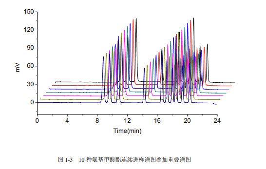 圖 1-3 10 種氨基甲酸酯連續進樣譜圖疊加重疊譜圖