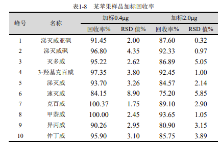 大連依利特分析儀器有限公司,結合《NY/T 761-2008 蔬菜和水果中有機磷、有機氯、擬除蟲菊酯和氨基甲酸酯類農藥多殘留的測定》方法及相關文獻中關于農殘測定的要求,建立的氨基甲酸酯分析系統,提出了蔬果中氨基甲酸酯類農藥殘留檢測的全套解決方案,并以蘋果為樣品進行了檢測,實驗結果能夠達到標準中各項指標要求。
