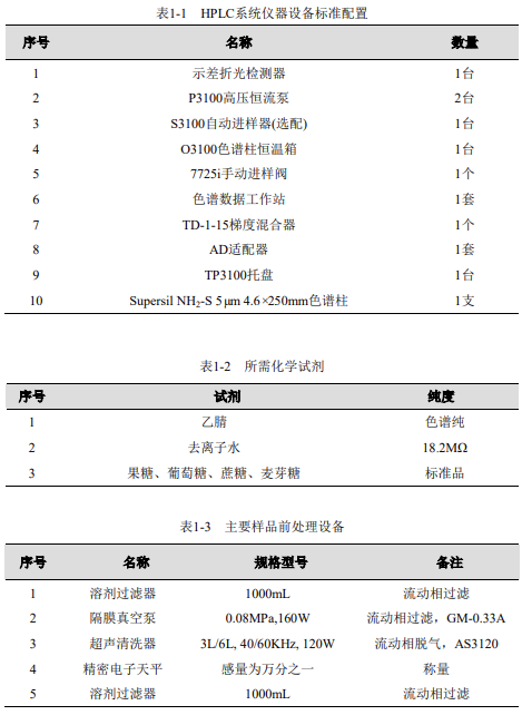 為滿足對蜂蜜中果糖、葡萄糖、蔗糖、麥芽糖含量的測定,依利特公司結合 GB 5009.8-2016《食品安全國家標準 食品中果糖、葡萄糖、蔗糖、麥芽糖、乳糖的測定》及《中國藥典》2015 版第一部相關標準,采用示差折光檢測器,經氨基色譜柱分離,根據保留時間定性和峰面積定量,提出了蜂蜜中果糖、葡萄糖、蔗糖、麥芽糖含量測定的全套 HPLC 解決方案,包括前處理設備、試劑、前處理方法直至液相色譜方法。相關人員可參考本實驗中的方法,進行蜂蜜中果糖、葡萄糖、蔗糖、麥芽糖含量的檢測。