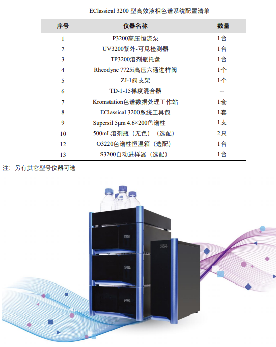 EClassical 3200 高效液相色譜儀是依利特自主研發的一款具有自主知識產權的新型高效液相色譜儀,在滿足不斷升級的法規要求的同時,重新定義國產液相的外觀設計,完善分析過程中的自動性、連續性、完整性,展現試劑選擇時的靈活性、實驗室結果的穩定性,滿足了實驗室低成本、高效率運行的可行性。其積木式單元模塊,可根據客戶需求靈活實現等度、二元高壓梯度、四元低壓梯度、DAD 系統配置;色譜柱溫箱、自動進樣器、脫氣機、餾分收集器、柱后衍生器、熒光檢測器、示差檢測器、蒸發光檢測器、激光誘導熒光檢測器等單元模塊任意選配,可廣泛用于中控、質檢及實驗室,滿足不同客戶需求。