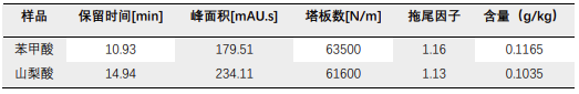 樣品中山梨酸和苯甲酸含量分析結果