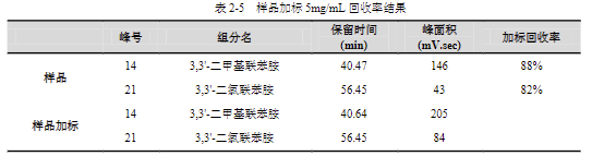 擇 5mg/kg 進行樣品加標,單點測試其加標回收率。