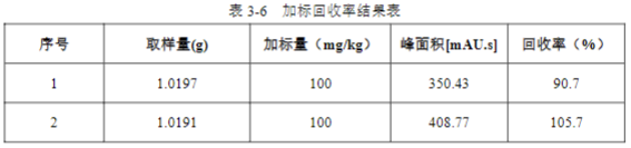該色譜條件下,儀器的基線噪聲為 0.0168 mAU,根據信噪比 \(S/N=3\),計算得到甲巰咪唑的儀器小檢測濃度為 0.005 mg/L,實際方法檢出限為 0.104 mg/kg。