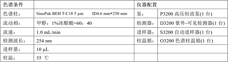 依利特新款的EClassical 3200液相色譜儀搭配新推的SinoPak BEH T-C18色譜柱,對羥苯乙酯樣品進行分析,峰形對稱性較好,柱效高,滿足定性定量分析的需求。