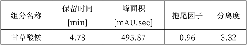 取甘草酸銨對照品適量,精密稱定,加流動相制成每1mL含40mg的溶液,即得(相當于每1mL含甘草酸銨39.18mg)。