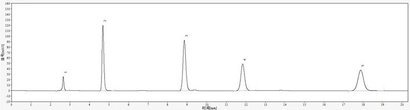第400針的各峰的拖尾因子與第1針的各峰的拖尾因子比較。1號、2號和5號峰拖尾因子數據依然保持非常好,而3號峰和4號峰從數據上看拖尾因子略有變大,從譜圖上看也能看出3號峰和4號峰似乎有新雜質檢出。同一根色譜柱,1號、2號和5號峰拖尾因子數據非常好,而3號峰和4號峰數據,從不拖尾變成有點拖尾,有可能的原因是該實驗持續時間比較長,而在這么長的時間內,3號峰和4號峰樣品本身不穩定,出現了新的雜質造成。