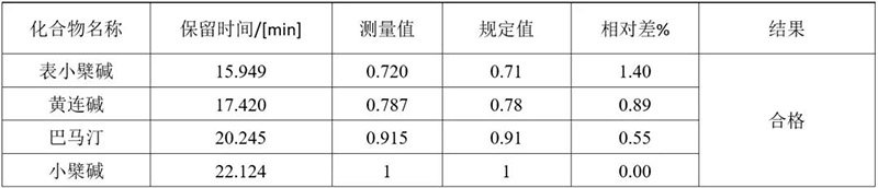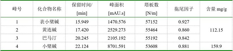 由此可見,使用依利特EClassical 3200高效液相色譜儀以及SinoChrom ODS-BP色譜柱,測得的黃連配方顆粒的特征圖譜及含量均滿足藥典要求。