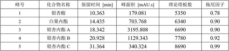 取本品20片,除去包衣,精密稱定,研細,取相當于萜類內酯19.2mg的粉末,精密稱定,置具塞錐形瓶中,精密加入甲醇50mL,密塞,稱定重量,超聲處理(功率250W,頻率33kHz)20分鐘,放冷,再稱定重量,用甲醇補足減失的重量,搖勻,濾過,精密量取續濾液20mL,回收甲醇至干,殘渣加水10mL,置水浴中溫熱使溶散,加2%鹽酸溶液2滴,用乙酸乙酯振搖提取4次(15mL,10mL,10mL,10mL),合并提取液,用5%醋酸鈉溶液20mL洗滌,分取醋酸鈉液,用乙酸乙酯10mL洗滌,合并乙酸乙酯提取液及洗液,用水洗滌2次,每次20mL,合并水液,用乙酸乙酯10mL洗滌,合并乙酸乙酯液,回收溶劑至干,殘渣用甲醇溶解并轉移至5mL量瓶中,加甲醇至刻度,搖勻,即得。