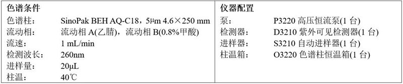 由此可見,使用依利特EClassical 3200高效液相色譜儀以及SinoPak BEH AQ-C18色譜柱,測得的燙骨碎補配方顆粒的特征圖譜滿足藥典要求。